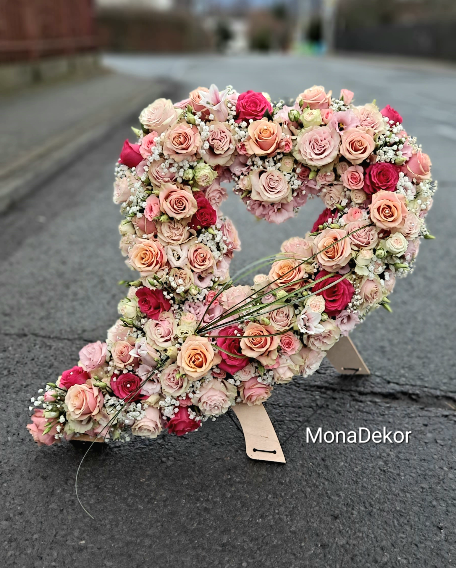 ...5... Květinové srdce s podstavcem z růží . Možno dodat stuhu s nápisem dle přání